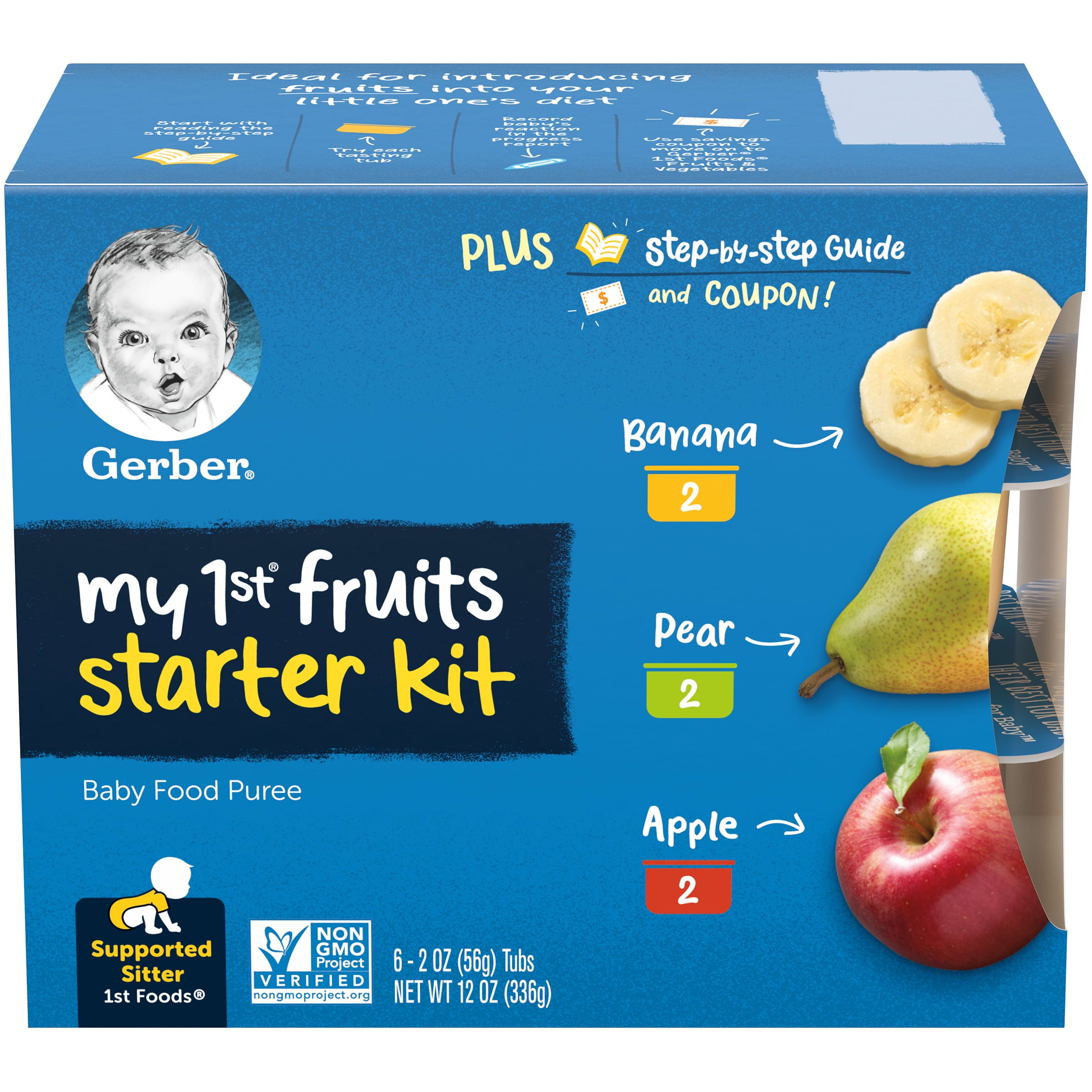 Gerber My 1st Fruits Starter Kit Baby Food Banana Pear Apple 2 Oz Tubs 12 Pack Walmart Com